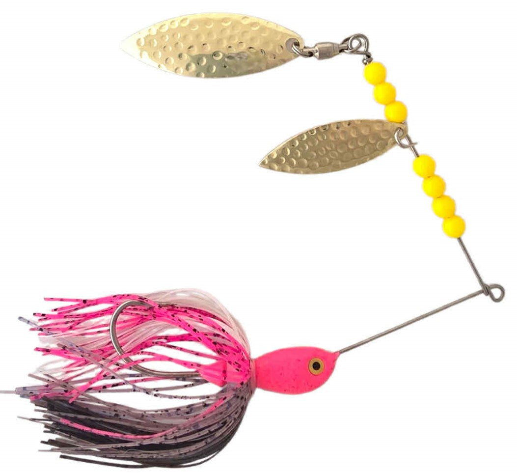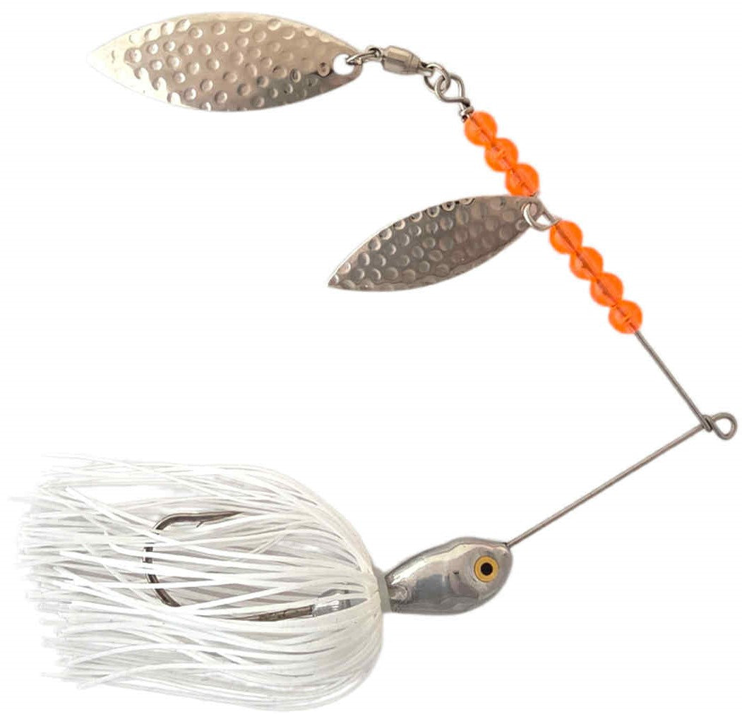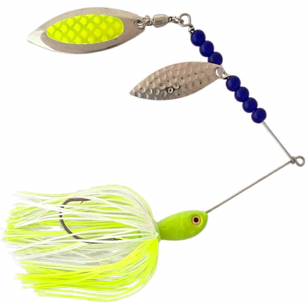 Premium Spinner Baits: Equipped with 2 Willow Leaf blades. These spinner baits are armed with high quality skirts and designed with a variety of color's guaranteed to catch the eye of your fish! Available in 3/8 oz and 1/2 oz.